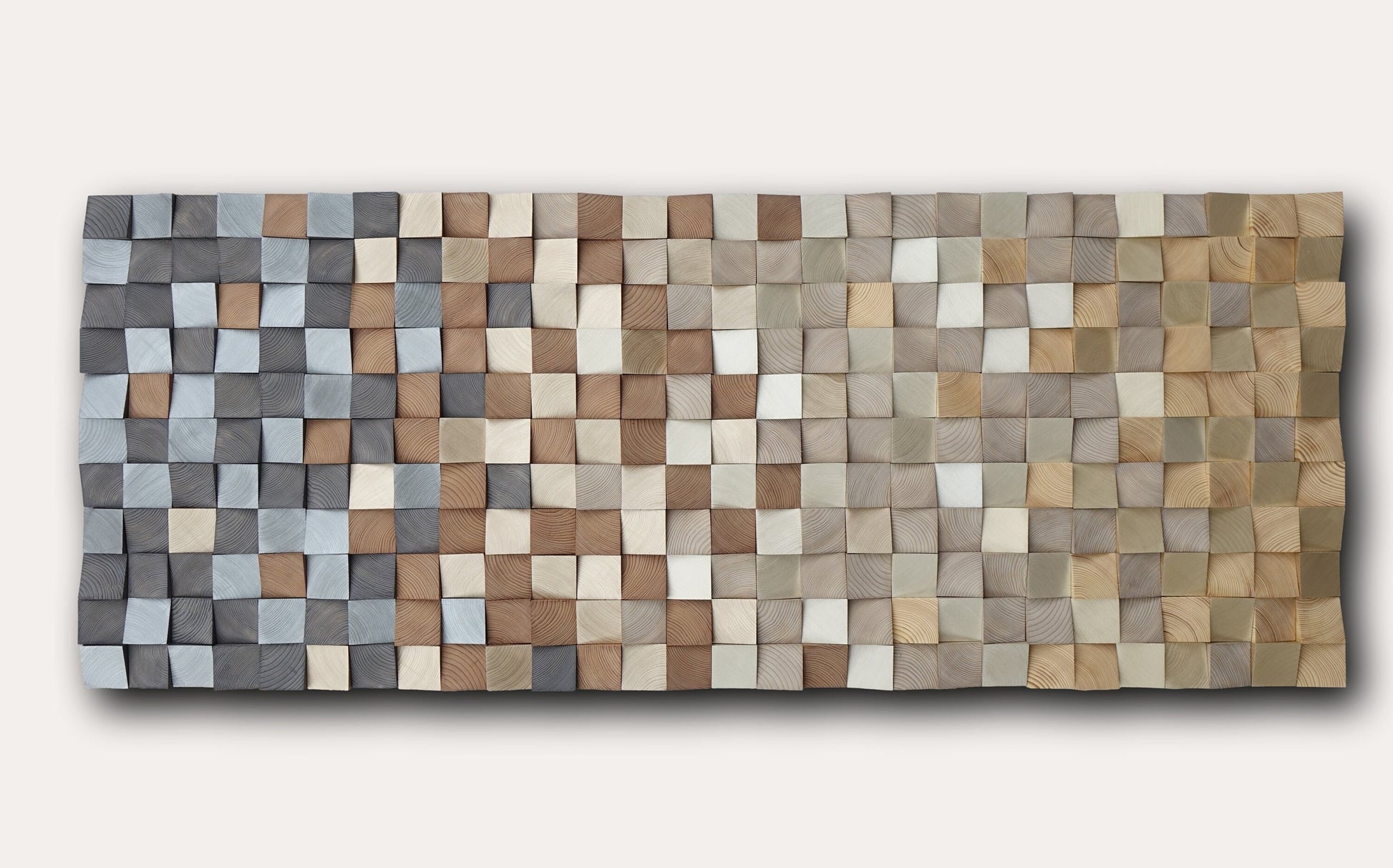 The particular design of this wood wall art allows you to hang it either vertically or horizontally in any wall of your home or office, just let us know. You don’t need to worry that the blocks will fall off the decoration after some time - we have stuck them to painted plywood using very powerful glue that does an incredible job holding all the wood pieces together.